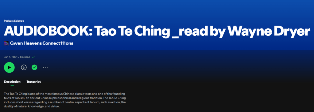 The Tao Te Ching read by Wayne Dyer on YouTube and Spotify