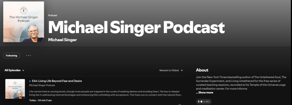 The Michael Singer Podcast on YouTube and Spotify